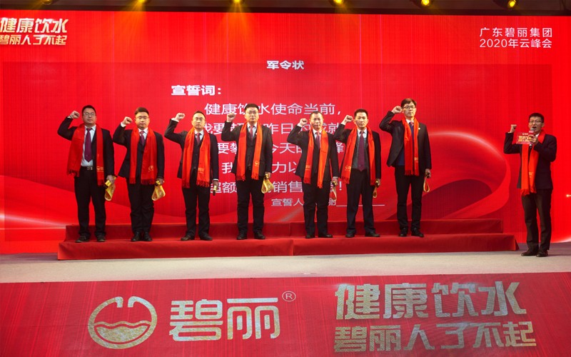 碧麗營(yíng)銷部代表在碧麗總裁巫宗權(quán)先生的見(jiàn)證下立下軍令狀,并表示在2021年將超額完成任務(wù),繼續(xù)為中國(guó)公共飲水事業(yè)做奉獻(xiàn)。宣誓儀式后,總裁為他們一一授旗,激勵(lì)各營(yíng)銷部代表朝著目標(biāo)奮進(jìn)!